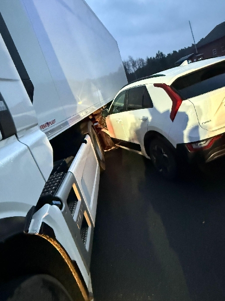 Ein PKW ist mit einem LKW zusammengstoßen. Eine Person wurde leicht verletzt.